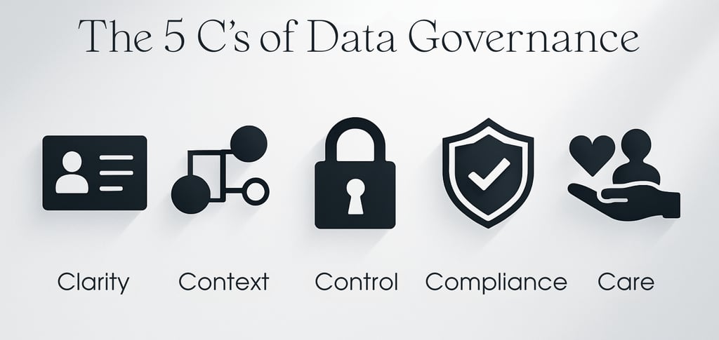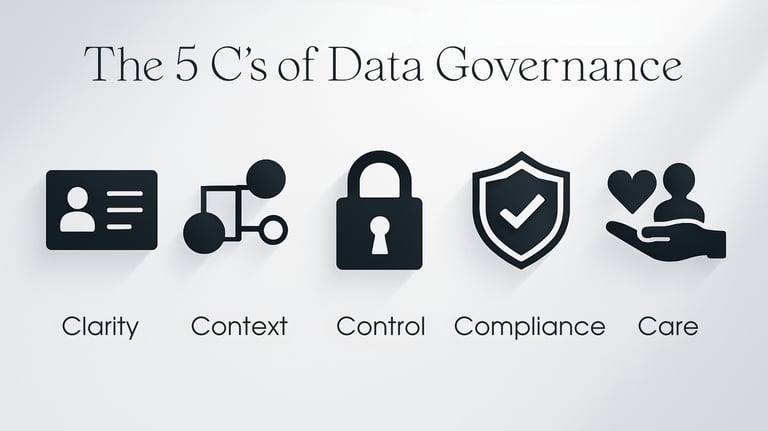 Quick note: there is no single universal “official” 5 C’s model. Different teams use different versions. The one below is the one I use when I want governance to be useful, scalable, and human.