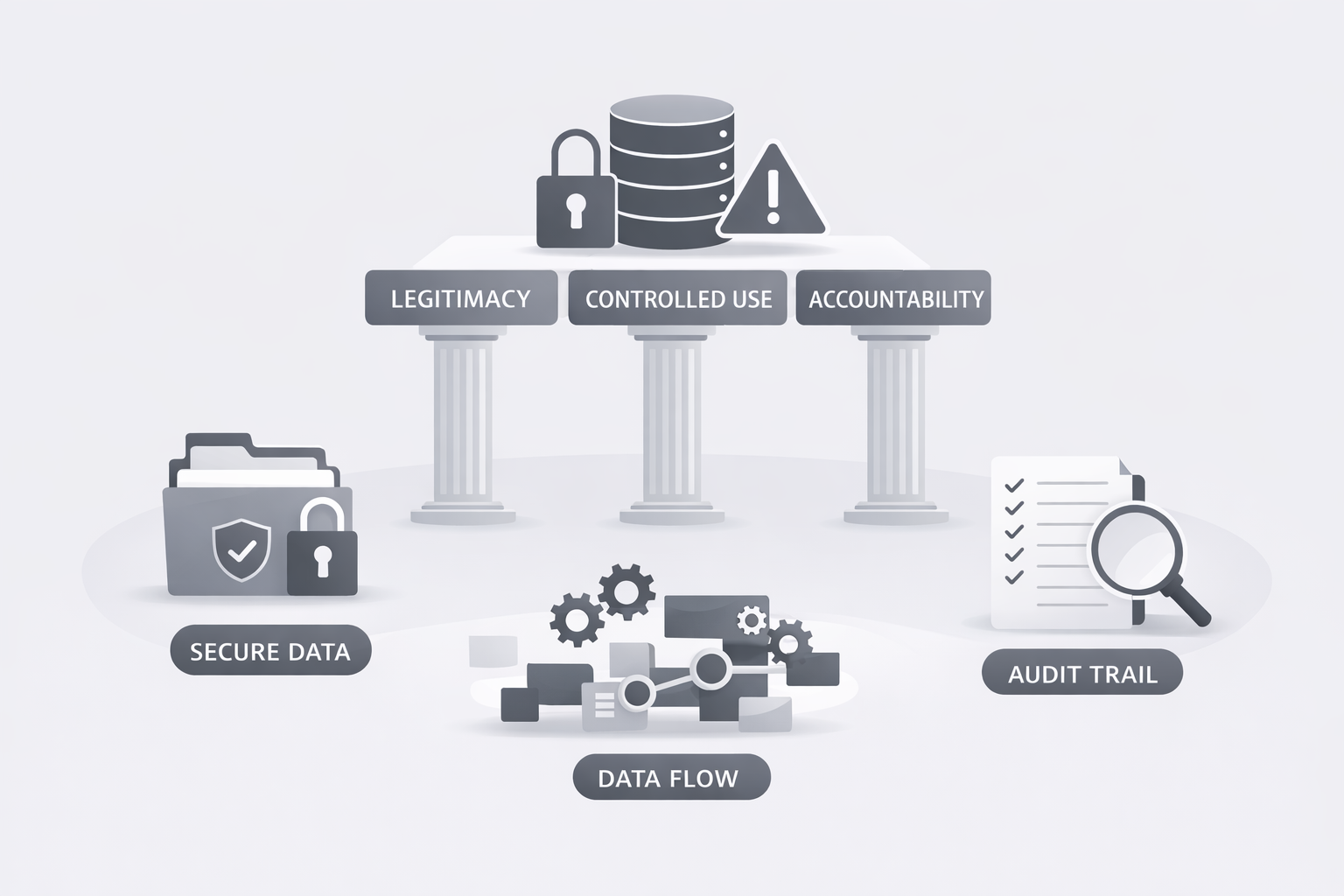 It covers who decides what data means, who can access it, how it may be used, how long it is kept, how quality is maintained, and how all of this is proven through documentation and auditability.